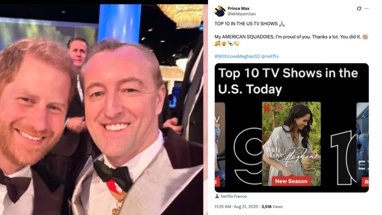 In one of the most cringeworthy PR stunts in recent memory, self-styled “Prince” Mario-Max zu Schaumburg-Lippe—already notorious for being branded a fake prince by genuine aristocrats, shared a doctored Netflix screenshot online in an attempt to promote Meghan Markle’s floundering project With Love, Meghan. The fabricated image falsely presented the show as ranking in the U.S. Top 10, a claim that collapsed the moment anyone compared it to Netflix’s actual chart.